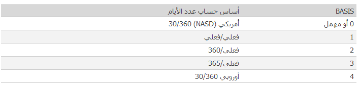 Basis اختيارية. وهي نوع أساس حساب عدد الأيام المطلوب استخدامه.