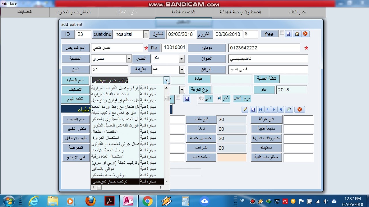 يالنسبة لنوع المنشأة فهي فردية أما الأقسام التشغيلية فهي عيادات خارجية يرجى الإفادة في أسرع وقت ممكن