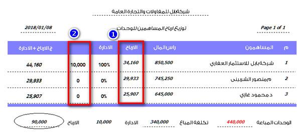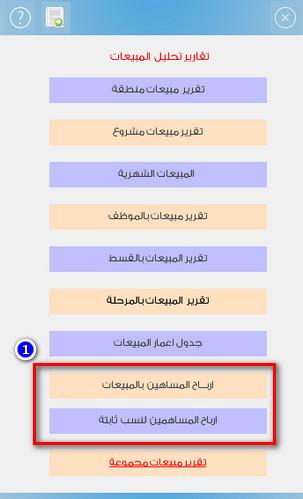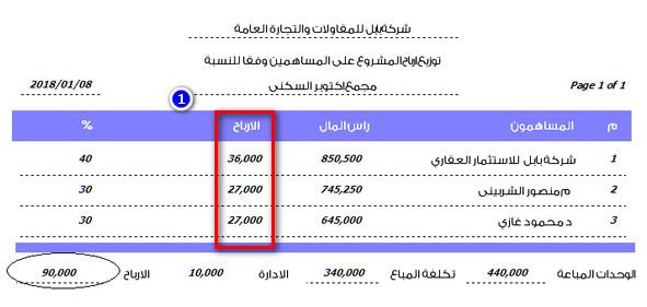 الخطوة الثالثة من قائمة الاستثمار العقاري تقارير المبيعات يوجد عدد 2 تقرير تقرير توزيع الارباح بين الشركاء وفقا لرأس المال العامل وتقرير توزيع الارباح بين المساهمين وفقا للنسب المتفق عليها وتجاهل قيمة رأس المال ولكن المفترض ان تكون نسبة الارباح هى نفس النسبة فى رأس المال