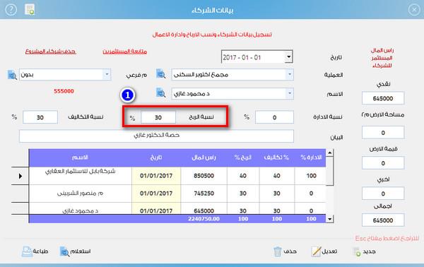 1- تسجيل بيانات الشركاء ونسبة كل شريك
